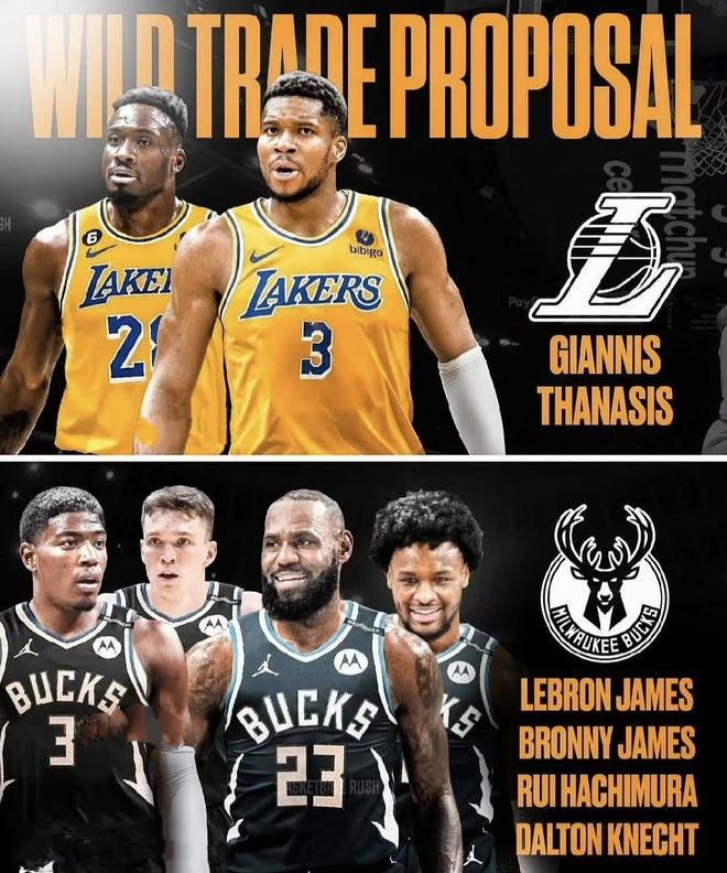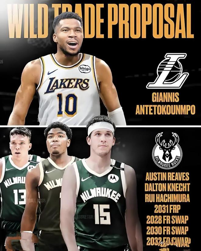 目前湖人給出的交易方案有兩種:其一,湖人用里夫斯、八村塁、2031年首輪選秀權(quán)以及2028、2030、2032年的首輪選秀權(quán)互換來交易字母哥和他哥,看似7換2的交易誠意滿滿,但顯然這還不夠!作為當下NBA聯(lián)盟最強的大前鋒,字母哥絕對不止四首輪(里夫斯值2首輪,克內(nèi)克特1首輪)。